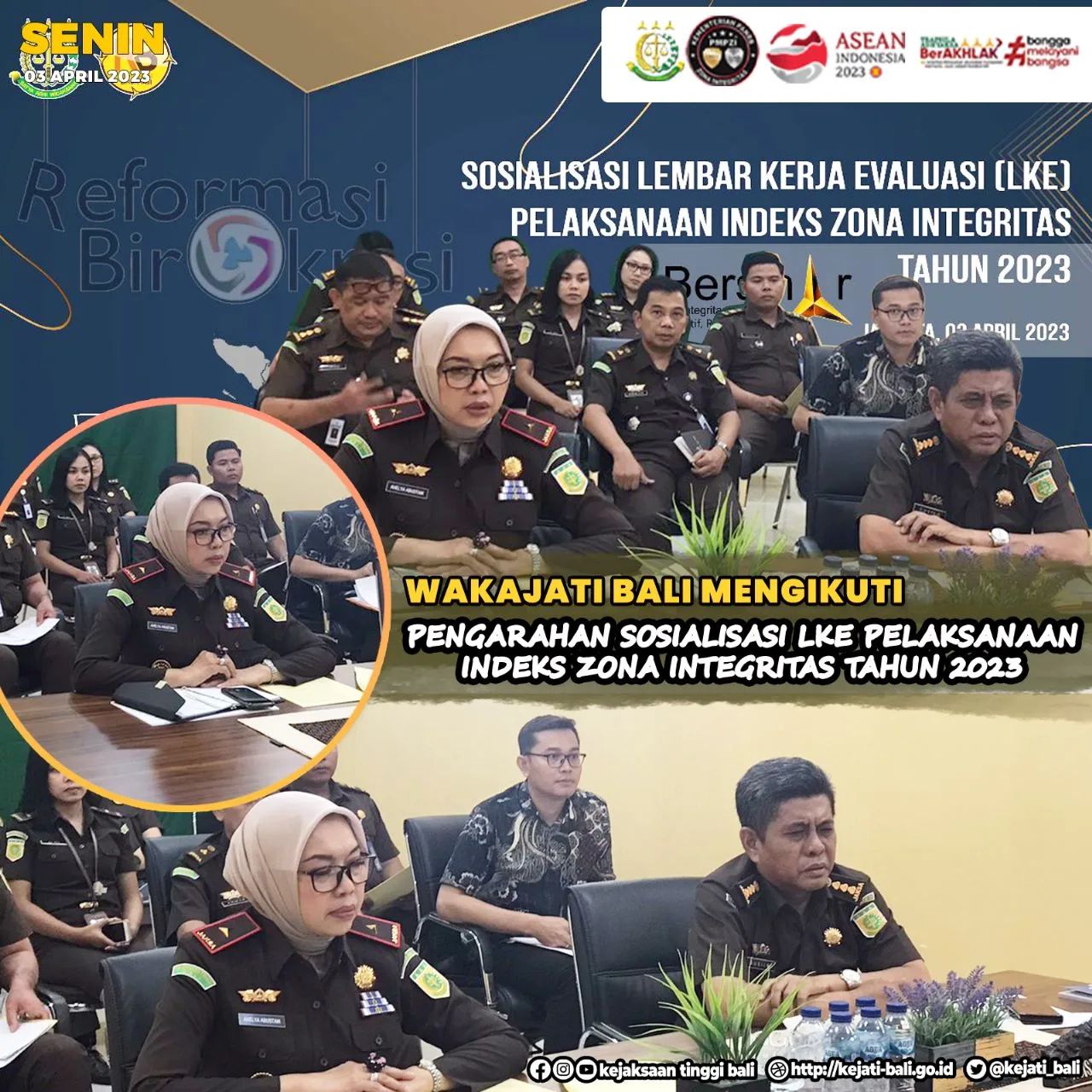 Wakil Kepala Kejaksaan Tinggi Bali, Ahelya Abustam, S.H., M.H. beserta Asisten Bidang Pengawasan, Para Pemeriksa, Kasubbag Perencanaan dan Staf hadiri Sosialisasi Pemenuhan Indeks Zona Integritas Melalui Indika