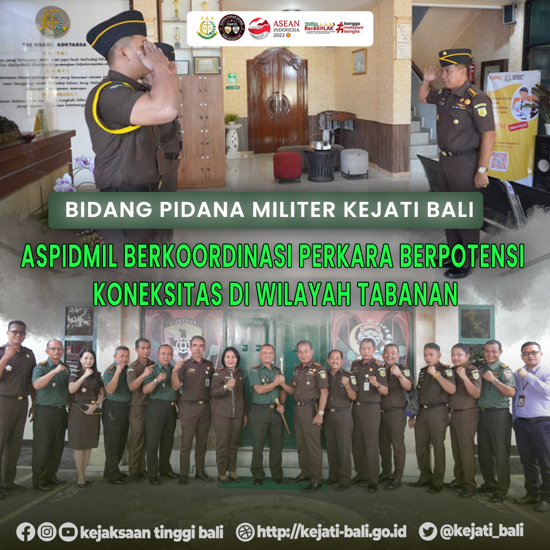 Kamis, 30 Maret 2023, Asisten Bidang Pidana Militer Kolonel Sus Lukas Sambiono, S.H didampingi Kepala Kejaksaan Negeri Tabanan beserta para Kasi dan staf melakukan Sosialisasi terkait Bidang Pidana Militer dan