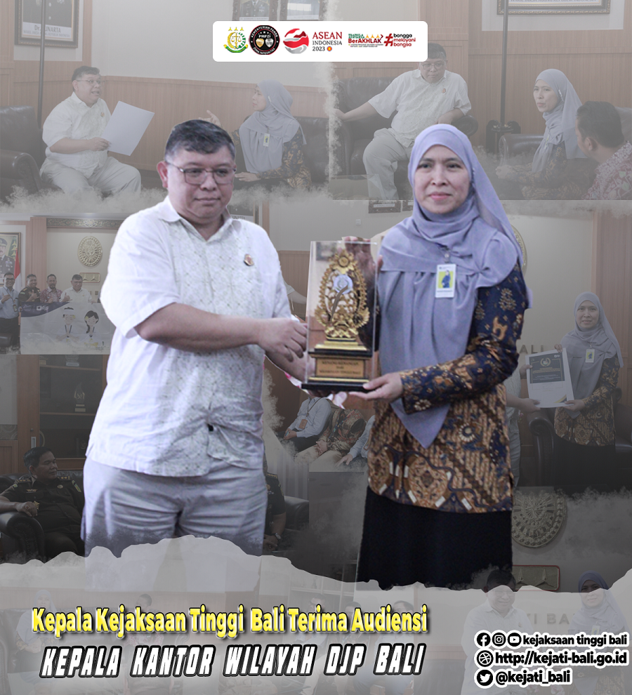 Rabu, 29 Maret 2023, Kepala Kejaksaan Tinggi Bali Narendra Jatna didampingi Asisten Tindak Pidana Khusus Agus Eko Purnomo dan Asisten Tindak Pidana Umum Nislianudin menerima audiensi dari Kepala Kantor Wilayah