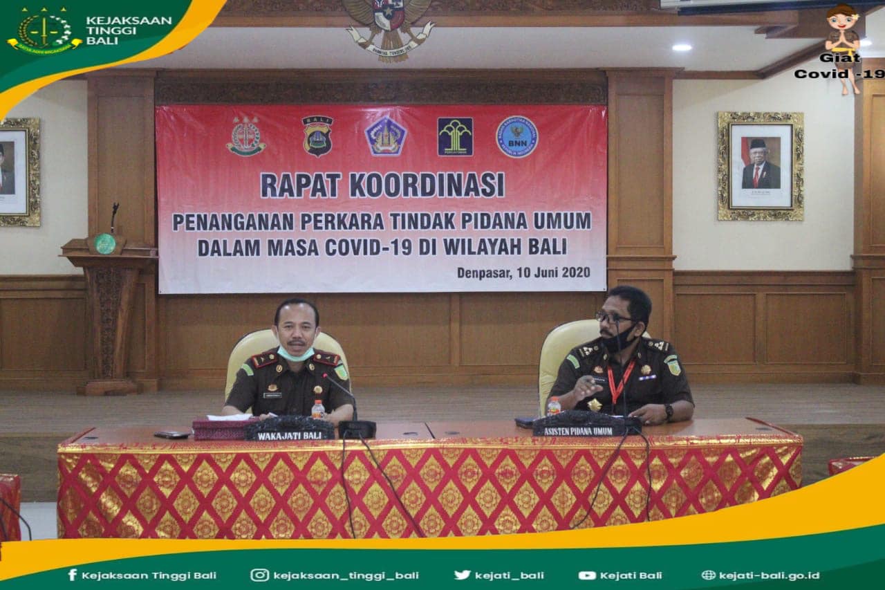 Penanganan perkara dalam situasi pandemi covid-19 di Propinsi Bali mendapatkan perhatian serius dari Kejaksaan Tinggi Bali. Melalui bidang Tindak Pidana Umum Kejati Bali, hari Rabu, 10 Juni 2020 bertempat di Au