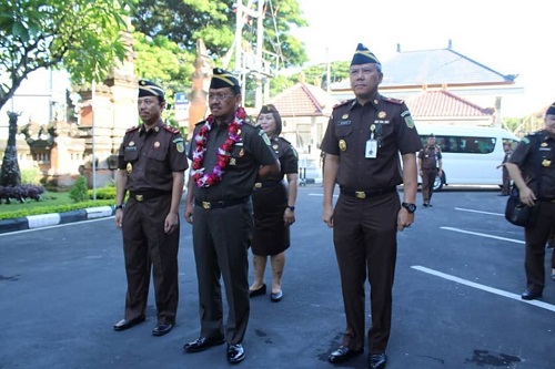 Wakajati Bali Bapak Asep Maryono, S.H. menghadiri Upacara Gelar Operasi Gaktib dan Operasi Yustisi TA 2020 untuk mewujudkan polisi militer yang siap meningkatkan ketaatan hukum, disiplin, dan tata tertib prajur