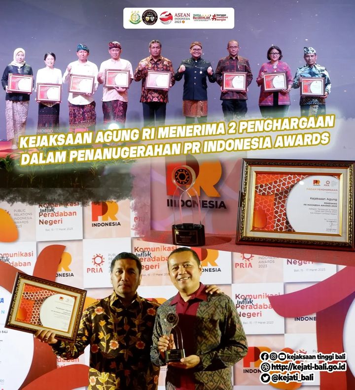 Hari Jumat tanggal 17 Maret 2023 bertempat di Aston Denpasar hotel & Convention Center, Kejaksaan Republik Indonesia menerima pengghargaan dari Public Relation (PR) Indonesia dalam ajang Public Relation Ind