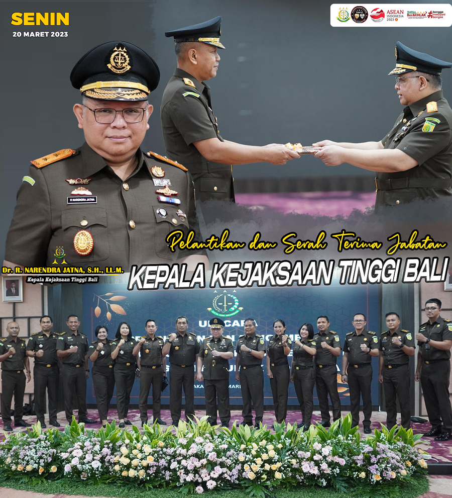 Senin, 20 Maret 2023, dilaksanakan pelantikan dan serah terima jabatan Kepala Kejaksaan Tinggi Bali dari bapak Ade T Sutiawarman, S.H.,M.H. kepada bapak Dr. R. Narendra Jatna, LL.M. Saat ini, bapak Ade T Sut