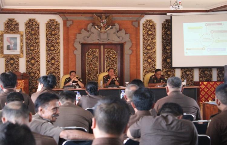 Denpasar, 25 September 2018 Kepala Kejaksaan Tinggi Bali Dr. Amir Yanto didampingi Wakil Kepala Kejaksaan Tinggi Bali Yudi Handono, SH, MH saat memberikan arahan kepada para Asisten pada Kejaksaan Tinggi