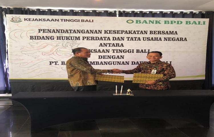 Denpasar, 19 September 2018 Kejaksaan Tinggi Bali yang di wakili oleh Kepala Kejaksaan Tinggi Bali Dr. Amir Yanto, SH.MM.MH, mengadakan kerjasama Penandatanganan Kesepakatan Bersama Bidang Hukum dan Perdata
