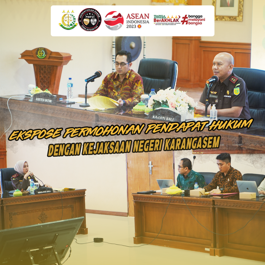 Jumat 3 Maret 2023, dilaksanakan Rapat Legal Opinion bersama Kejari Karangasem yg dipimpin langsung Kepala Kejaksaan Tinggi Bali Ade T Sutiawarman bersama Wakil Kepala Kejaksaan Tinggi Bali Ahelya Abu