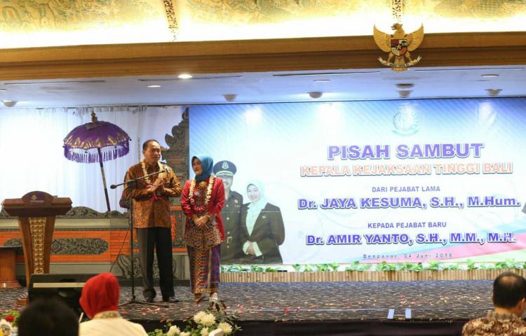 Pelantikan dan Serah Terima Jabatan Kepala Kejaksaan Tinggi Bali dari Pejabat Lama Dr. Jaya Kesuma, SH.MHum. kepada Pejabat Baru Dr. Amir Yanto, SH., MM., MH. (Rabu, 30 Mei 2018) bertempat Sasana Baharuddin