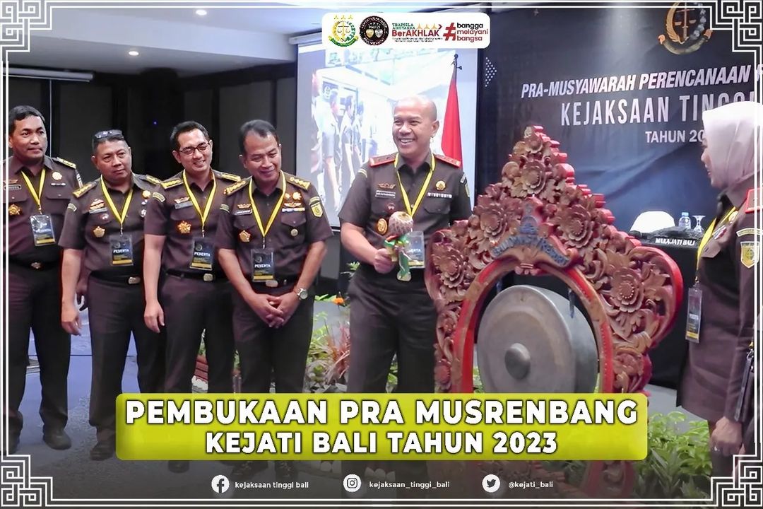 Kepala Kejaksaan Tinggi Bali, Ade T Sutiawarman, membuka Pra Musyawarah Perencanaan Pembangunan (Musrenbang) Kejaksaan Tinggi Bali Tahun 2023, Kamis, 23 Pebruari 2023 bertempat di Bali Dynasti Resort Kuta Badun