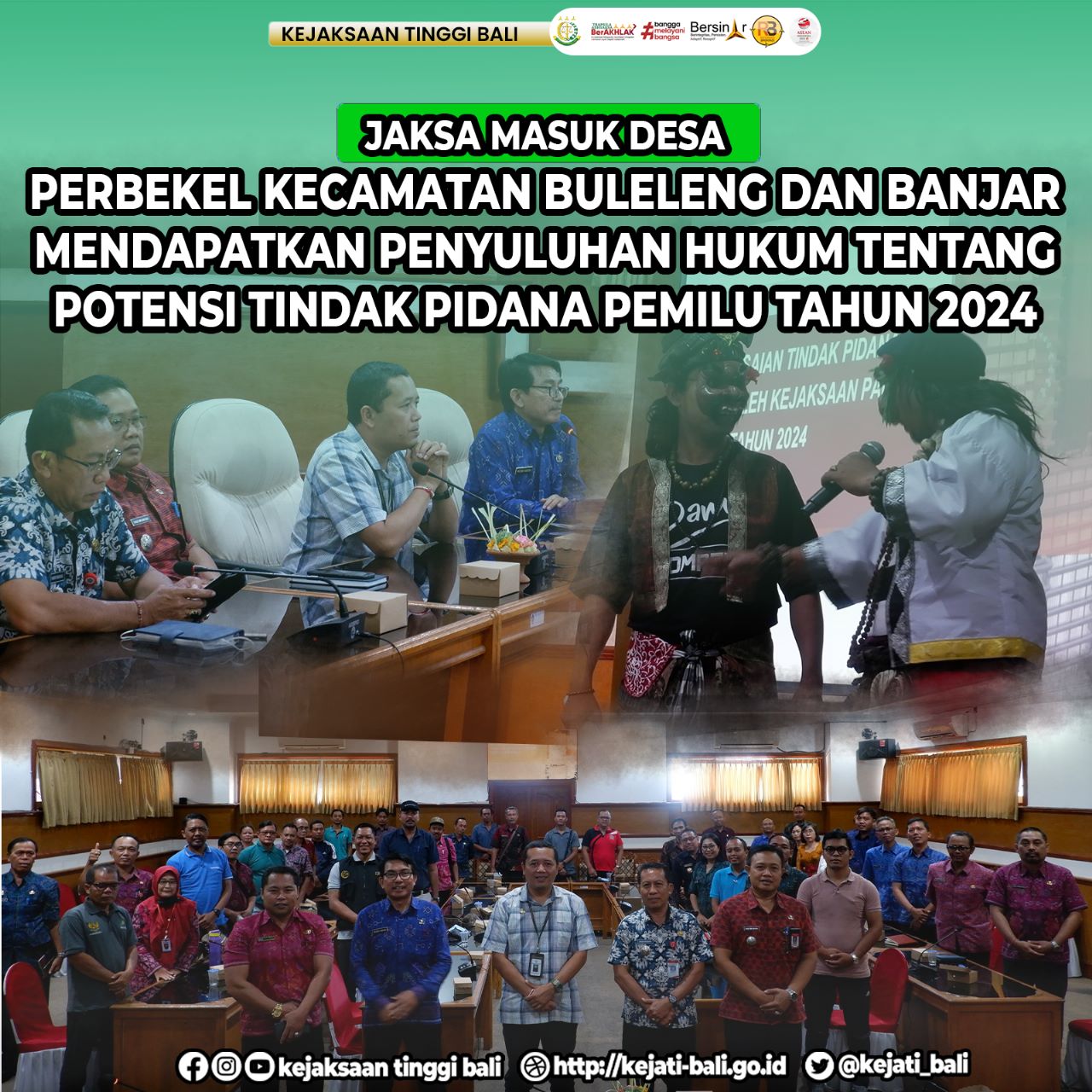 Kejaksaan Tinggi Bali kembali menyelenggarakan program penerangan hukum kepada 40 orang perbekel dan Kaur Keuangan dari Kecamatan Buleleng maupun dari Kecamatan Banjar dalam rangka Pembinaan Masyarakat Taat Huk