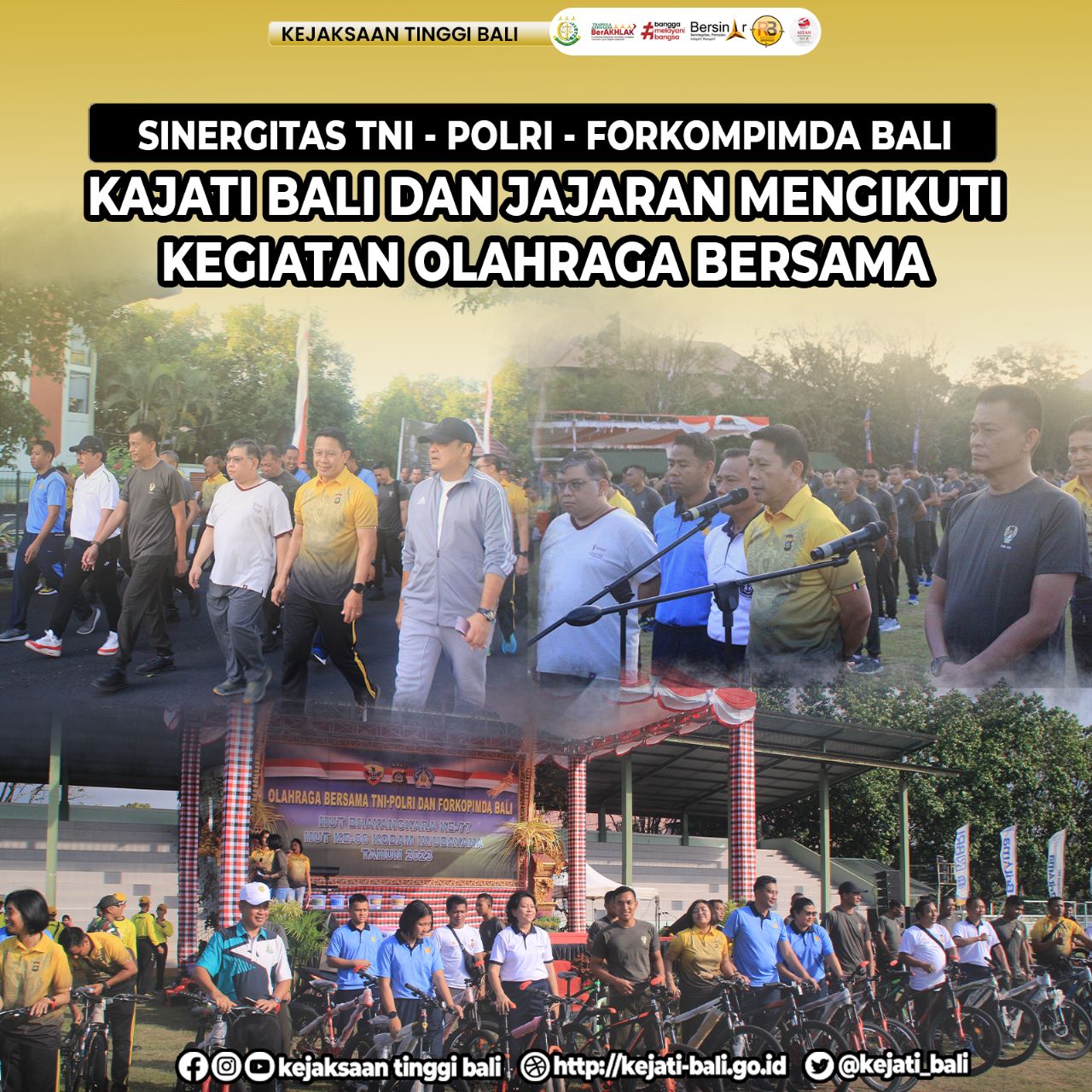 Bertepatan dengan peringatan HUT Bhayangkara ke-77 dan HUT ke-66 Kodam IX/Udayana Tahun 2023, Kepala Kejaksaan Tinggi Bali, Narendra Jatna, bersama Asisten Intelijen, Asisten Pidana Militer, dan Asisten Pidana