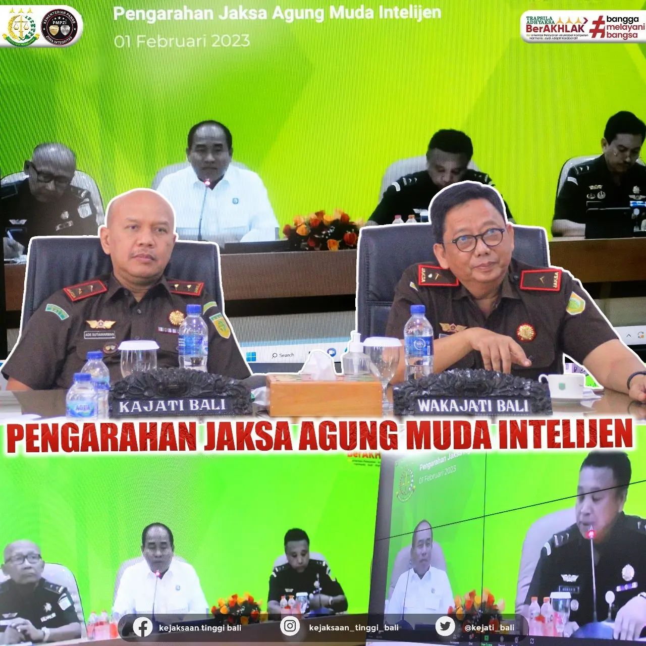 Kepala Kejaksaan Tinggi Bali, Ade T Sutiawarman, didampingi Wakil Kepala Kejaksaan Tinggi Bali, Teguh Subroto, bersama Para Koordinator dan Para Kasi pada Bidang Intelijen, mengikuti Pengarahan Jaksa Agung Muda