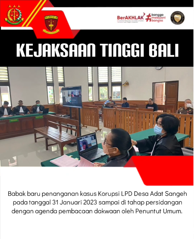 Babak baru penanganan kasus Korupsi LPD Desa Adat Sangeh pada tanggal 31 Januari 2023 sampai di tahap persidangan dengan agenda pembacaan dakwaan oleh penuntut umum. Terdakwa I Nyoman Agus Aryadi yang merupakan