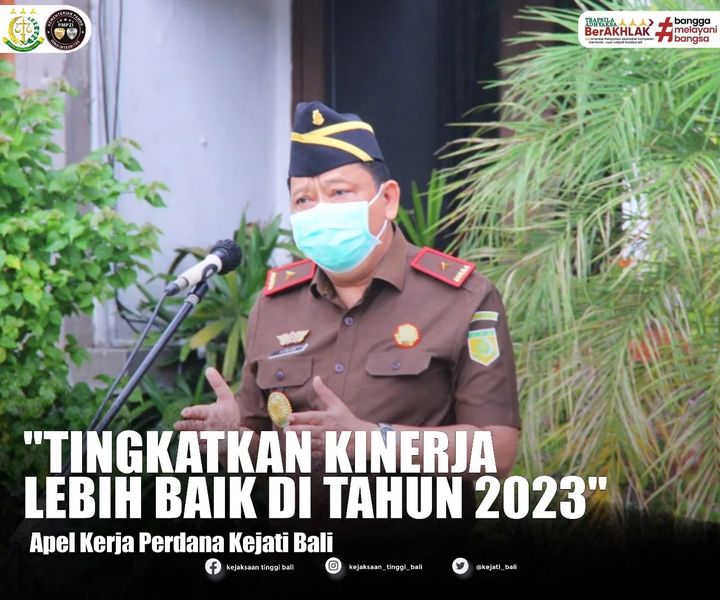 Kegiatan di hari pertama bekerja di Tahun 2023, Kejaksaan Tinggi Bali melaksanakan Apel Kerja. Wakil Kepala Kejaksaan Tinggi Bali, Teguh Subroto, SH., MH, bertindak sebagai penerima apel kerja. Dal