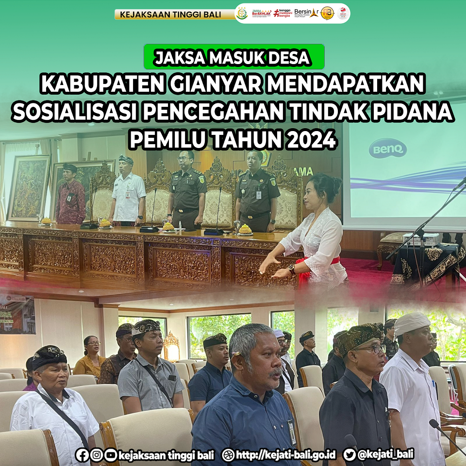 Kamis, 8 Juni 2023, Kejaksaan Tinggi Bali menyelenggarakan program penerangan hukum kepada perbekel dan Kaur Keuangan dari Kecamatan Gianyar maupun dari Kecamatan Sukawati dalam rangka Pembinaan Masyarakat Taat