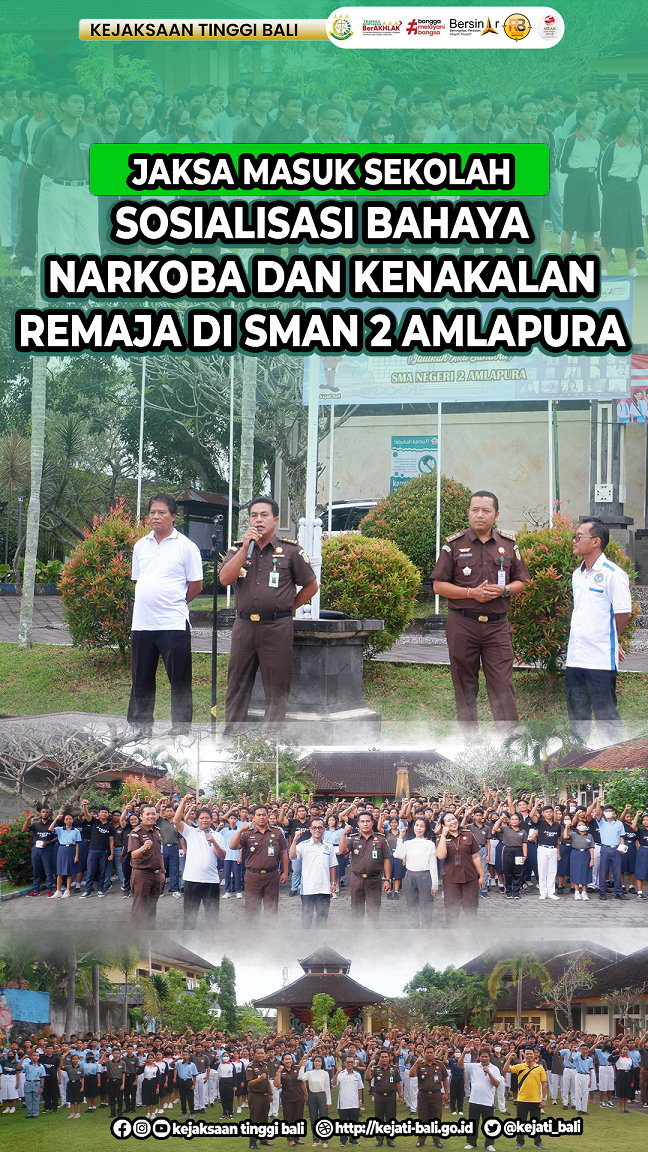 Jaksa Masuk Sekolah Kejati Bali hadir secara tatap muka bertemu para pelajar di Provinsi Bali. Kali ini, siswa Sekolah Menengah Atas Negeri 2 Amlapura mendapatkan pengetahuan terkait hukum, Rabu, 7 Juni 2023. H