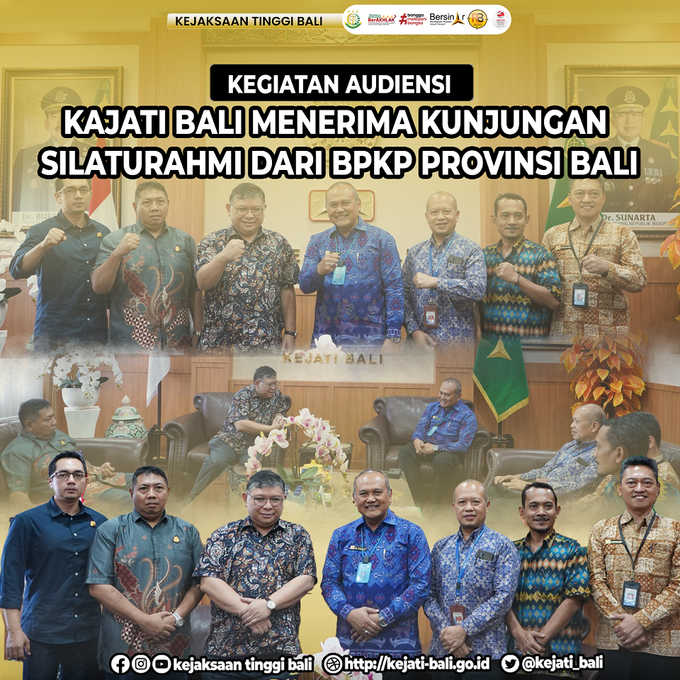 Pada hari Jumat tanggal 9 Juni 2023, Kepala Kejaksaan Tinggi Bali yang didampingi oleh Asisten Bidang Tindak Pidana Khusus dan Asiaten Perdata dan Tata Usaha Negara menerima kunjungan silahturahmi Kepala Perwak