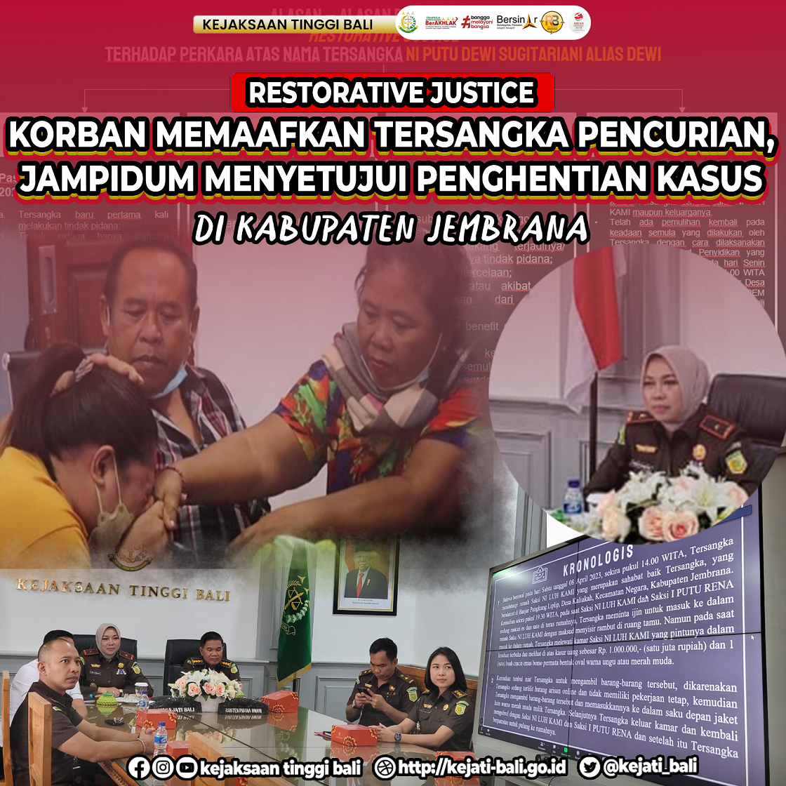 Niat tersangka yang gelap mata untuk mencuri mengakibatkan penyesalan di akhir. Semua berawal pada hari Sabtu tanggal 08 April 2023, sekira pukul 14.00 WITA, tersangka mendatangi rumah Saksi NI LUH KAMI yang