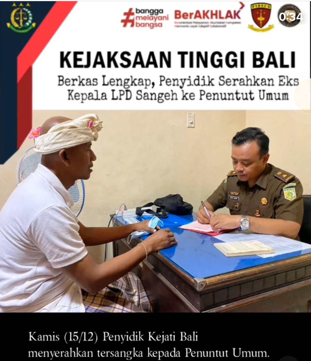 Perkembangan Penanganan Perkara Tindak Pidana Korupsi Pengelolaan Keuangan LPD Adat Sangeh. Selengkapnya : https://www.instagram.com/tv/CmL0dLzjNPe/?igshid=NTdlMDg3MTY=
