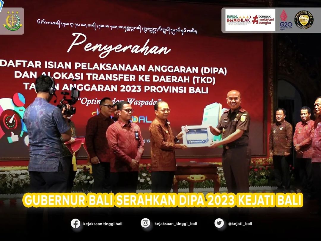 Kepala Kejaksaan Tinggi Bali, Ade T. Sutiawarman, menghadiri dan menerima penyerahan DIPA Tahun Anggaran 2023 lingkup Provinsi Bali oleh Gubernur Bali pada hari Selasa, 13 Desember 2022 bertempat di Gedung Ksir