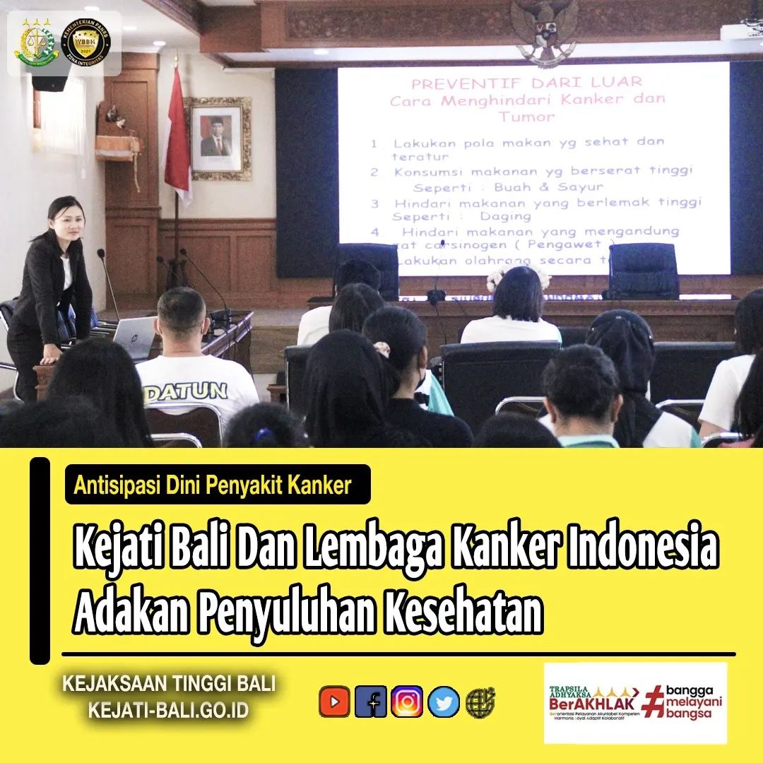Waspada penyakit kanker, Kejaksaan Tinggi Bali bekerja sama dengan Lembaga Kanker Indonesia, berikan penyuluhan kesehatan kepada para pegawai Kejaksaan Tinggi Bali Jumat, 2 Desember 2022 bertempat di Aula Sa