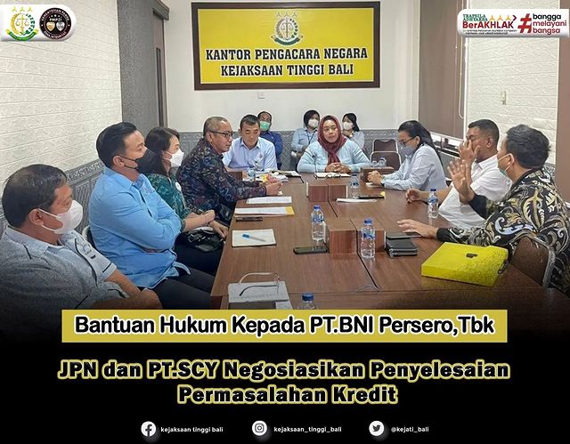 Selasa, 6 Desember 2022, di ruang rapat Kantor Pengacara Negara Kejaksaan Tinggi Bali berlangsung rapat negosiasi sebagai tindak lanjut dari permohonan Bantuan Hukum Non Litigasi yang diajukan oleh pihak PT BNI