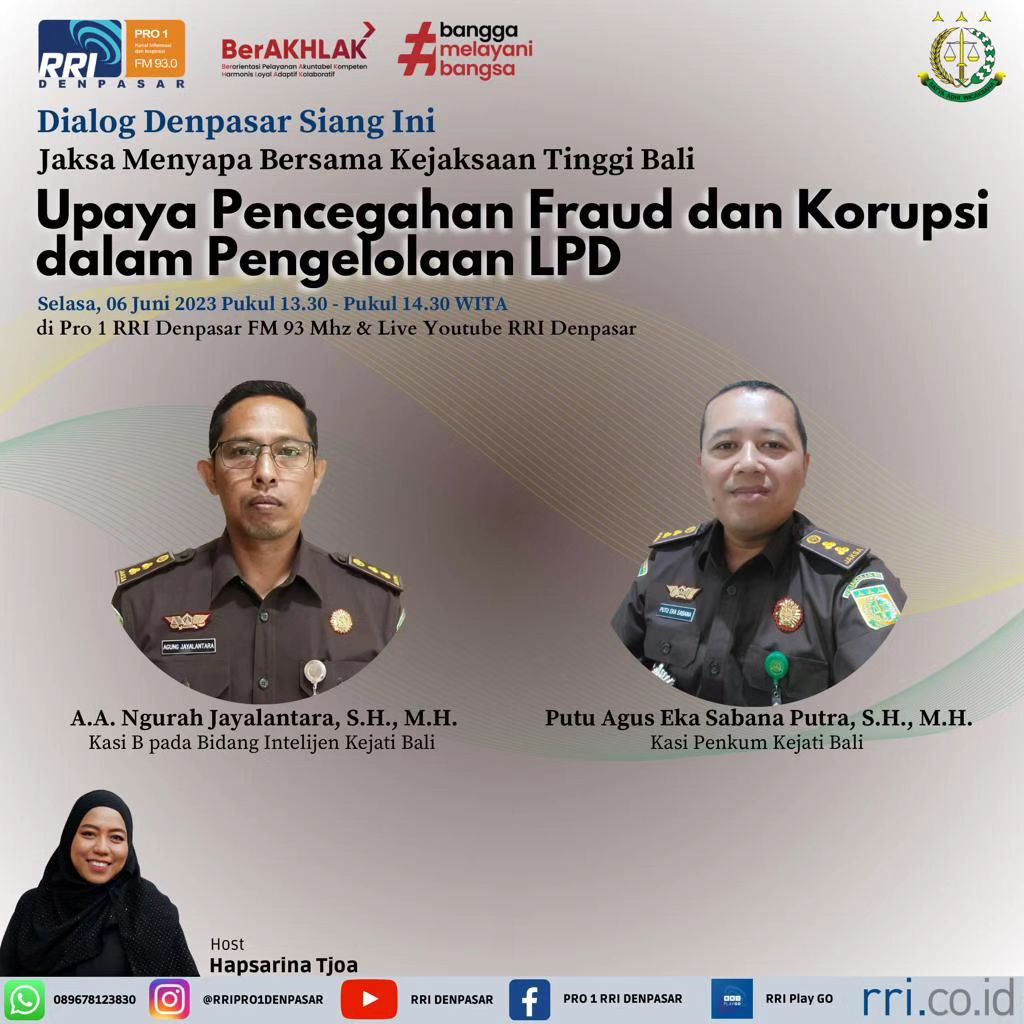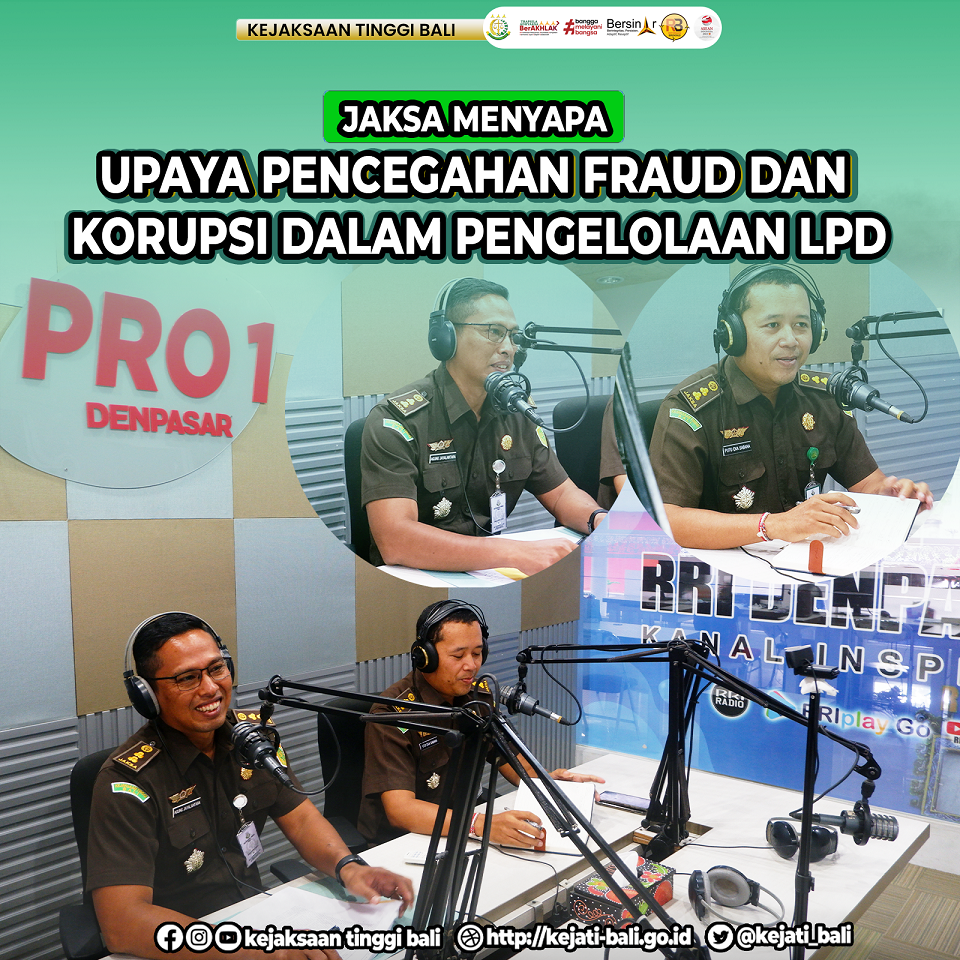 Kegiatan Siaran Dialog “JAKSA MENYAPA” merupakan kerjasama antara Lembaga Penyiaran Publik dengan Kejaksaan Tinggi Bali yang bertujuan membangun sarana hubungan masyarakat dengan Kejaksaan RI melalu