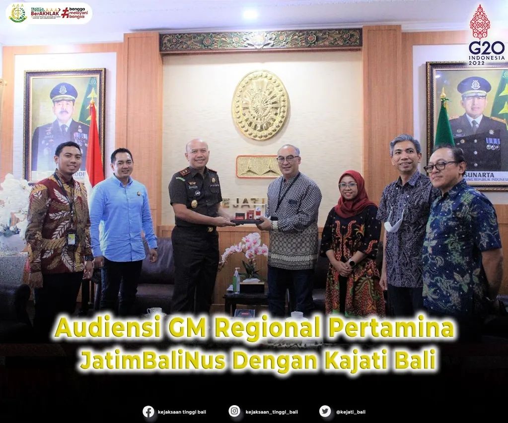 Kamis, 20 Oktober 2022, Kepala Kejaksaan Tinggi Bali Ade T Sutiawarman, didampingi Asisten Perdata dan TUN Denny Achmad, menerima audiensi Excecutive GM Regional Pertamina JatimBaliNus Deny Djukardi W beserja j