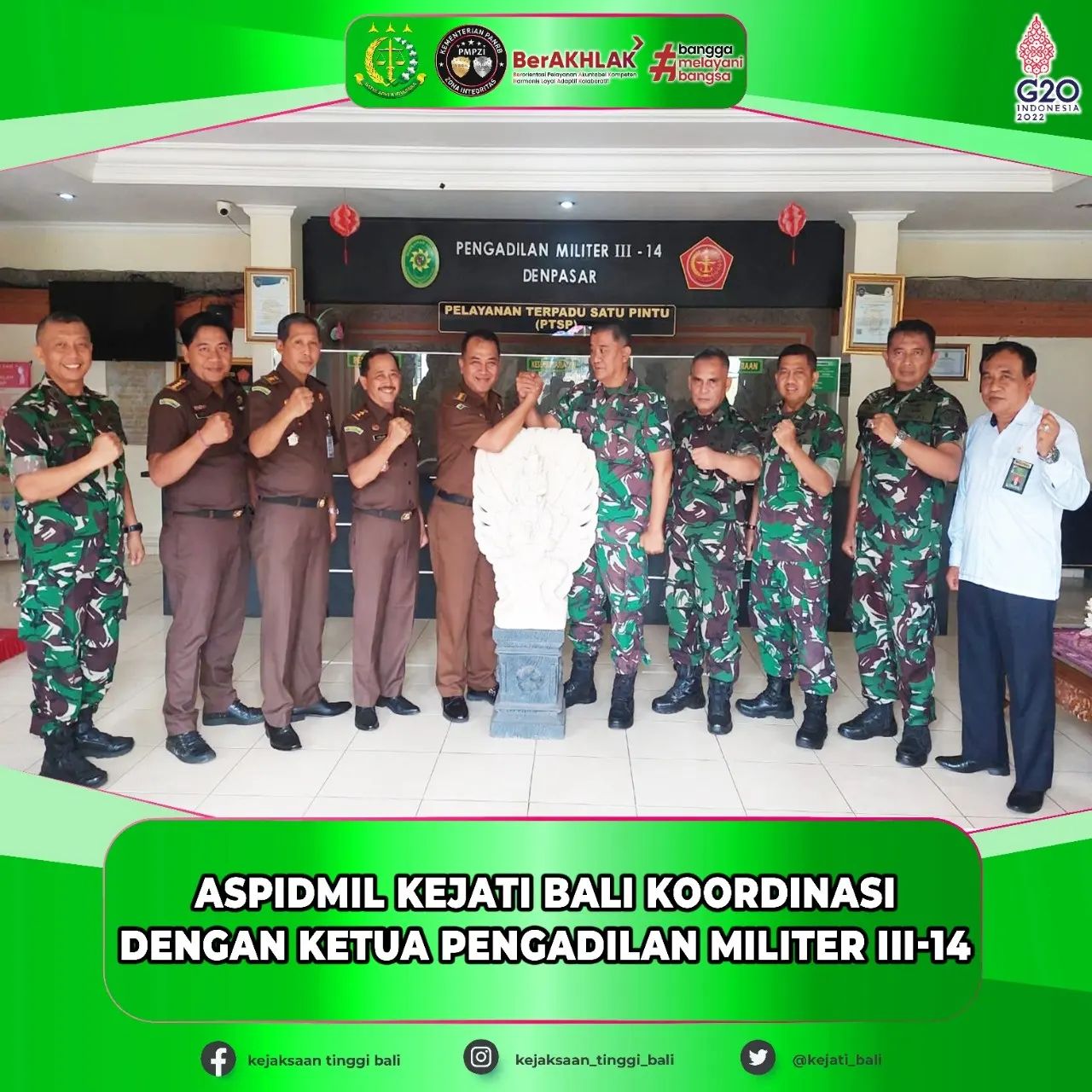 Asisten Bidang Pidana Militer Kejaksaan Tinggi Bali, Kolonel Sus Lukas Sambiono, SH yang didampingi oleh Kasi Penuntutan (IGN Bagus Suralaga, SH), Kasi Eksekusi, Eksaminasi dan Upaya Hukum Luar Biasa (IGN Agung