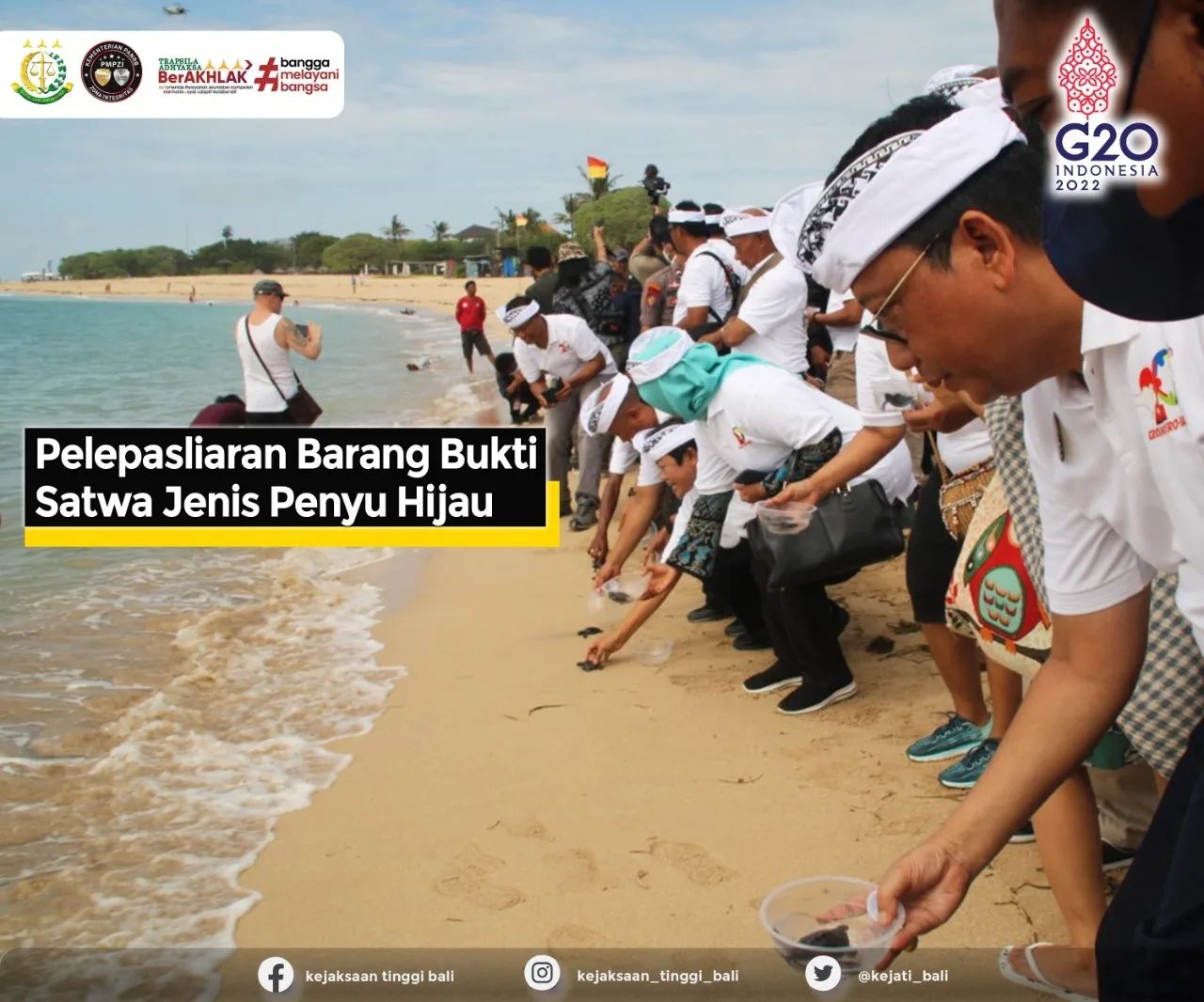 Wakil Kepala Kejaksaan Tinggi Bali, Teguh Subroto, melakukan pelepasliaran barang bukti berupa satwa jenis penyu hijau sebanyak 6 ekor, Rabu, 12 Oktober 2022, bertempat di Hotel Merusaka Nusa Dua.