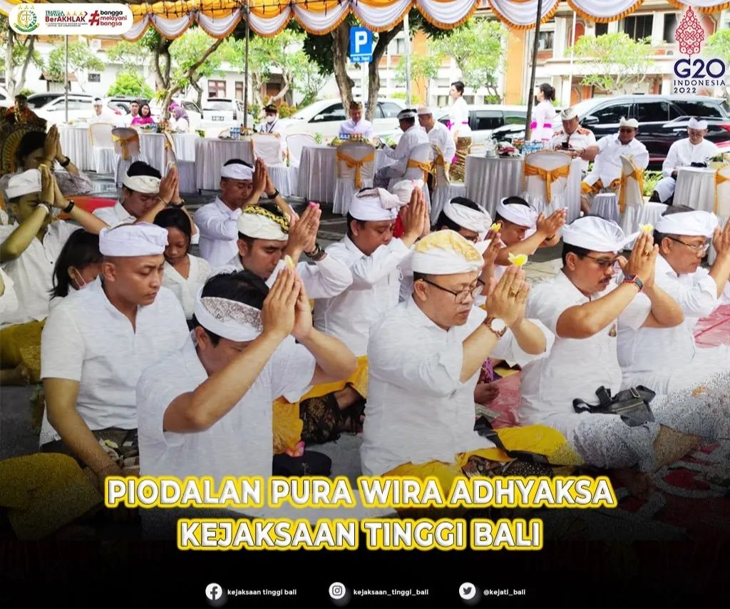 Piodalan ring Pura Wira Adhyaksa Kejaksaan Tinggi Bali, Purnama Kapat, Soma, 10 Oktober 2022. Sampun kerawuhin olih umat se-dharma Kejaksaan Tinggi Bali, kesaksiang olih Kepala Kejaksaan Tinggi Bali, Ade T.