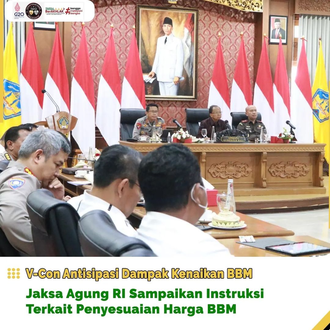 Kepala Kejaksaan Tinggi Bali, Ade T Sutiawarman, beserta Gubernur Bali beserta Unsur Forum Komunikasi Pimpinan Daerah Provinsi Bali mengikuti kegiatan Video Conference dengan agenda pembahasan tentang Antisipas