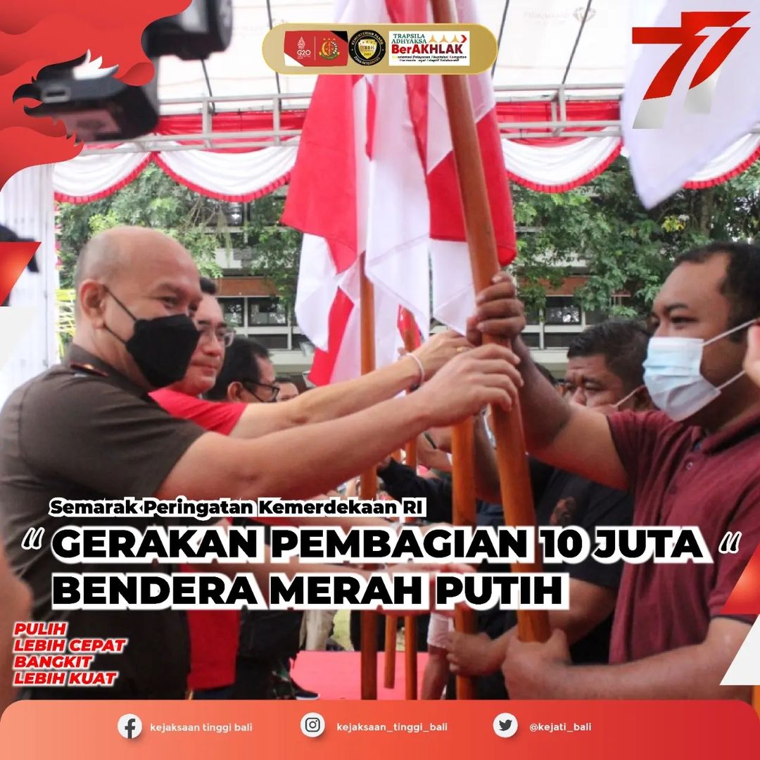 Kepala Kejaksaan Tinggi Bali, Ade T Sutiawarman, Rabu, 10 Agustus 2022, bertempat di Halaman Utama Kantor Gubernur Bali, mengikuti kegiatan Penyerahan Bendera Merah Putih secara simbolis kepada Masyarakat umum