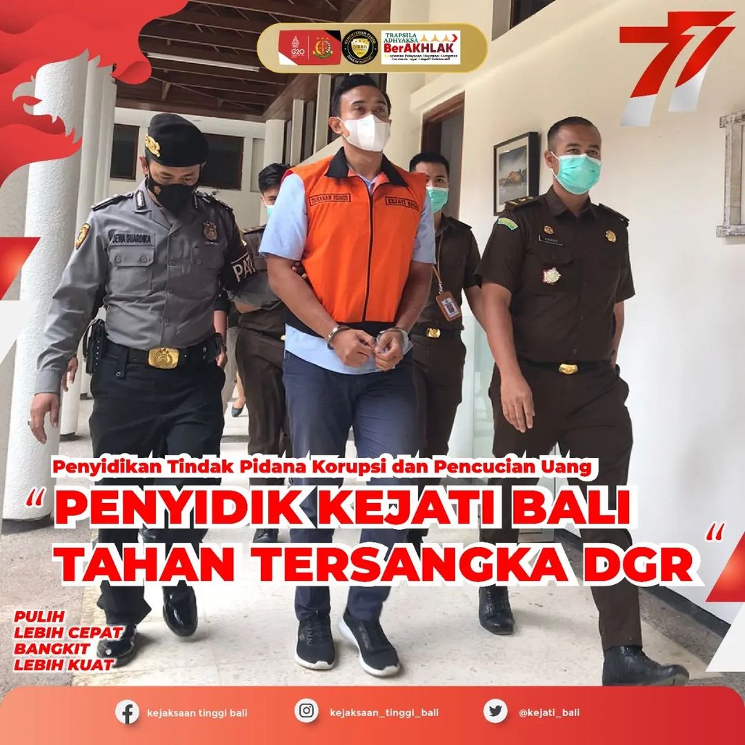 Siaran Pers Kejati Bali : Penahanan Tersangka DGR Pada hari Rabu, 10 Agustus 2022, Tersangka DGR hadir memenuhi panggilan penyidik Kejati Bali dengan didampingi 2 orang penasihat hukum. Tersangka y