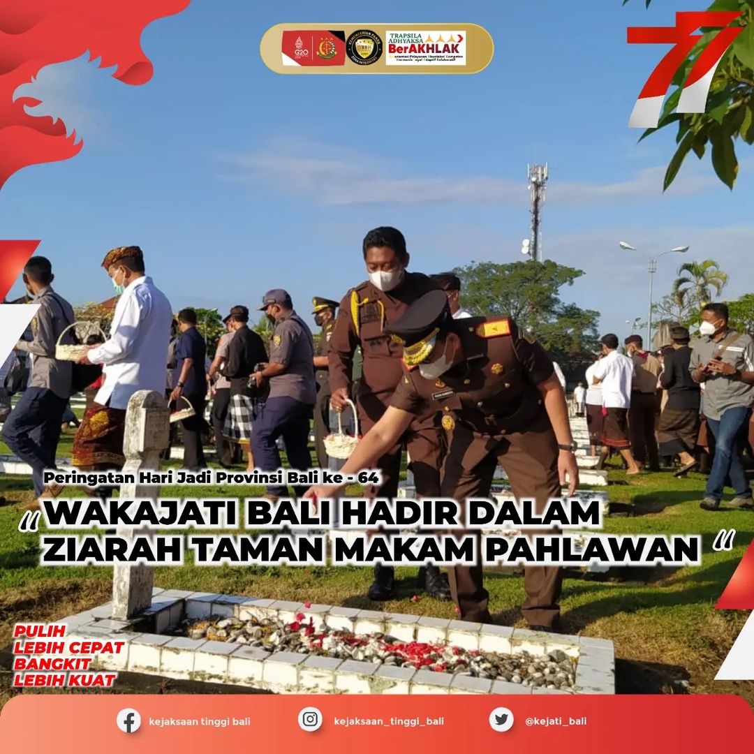 Kamis, 11 Agustus 2022, Wakil Kepala Kejaksaan Tinggi Bali, Teguh Subroto, menghadiri Ziarah Tabur Bunga di Makam Pahlawan Pancaka Tirta Tabanan dalam rangka Peringatan Hari Jadi Provinsi Bali Ke-64 Tahun 2022.