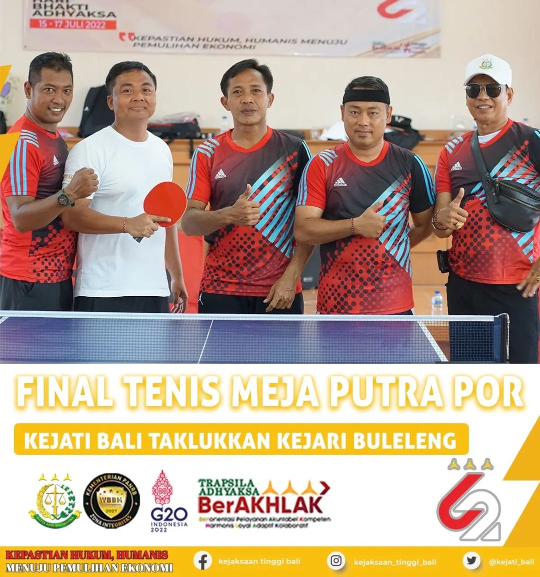 Selamat Untuk Tim Tenis Meja Putra Kejati Bali Satu lagi prestasi olahraga diraih Kejati Bali dalam Pekan Olahraga Kejati Bali memperingati Hari Bhakti Adhyaksa ke-62. Setelah sukses menjadi juara