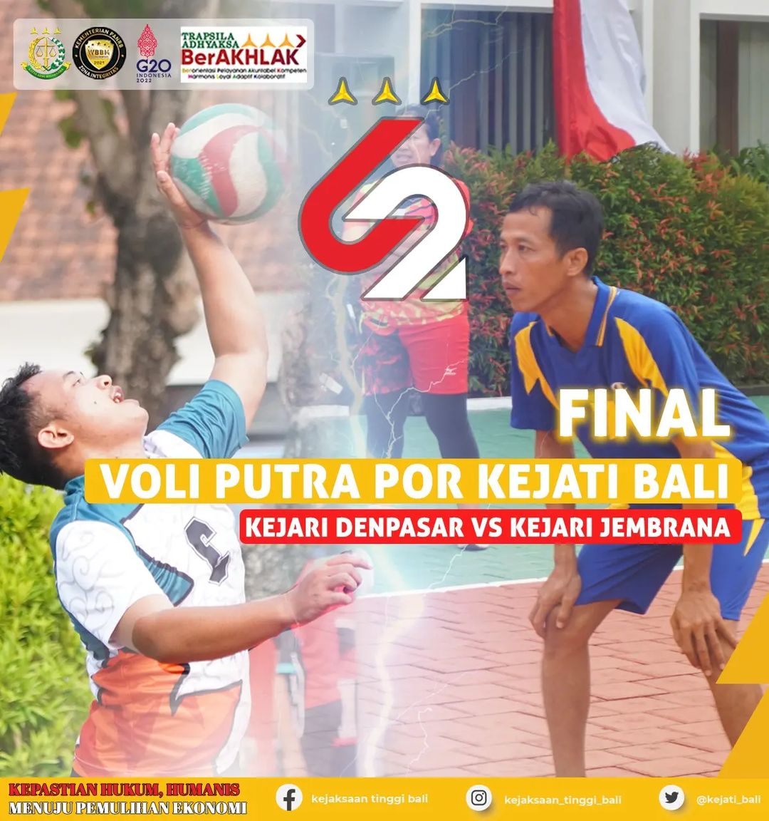 Pada Penutupan Pekan Olahraga Kejati Bali memperingati Hari Bhakti Adhyaksa ke-62, Minggu, 17 Juli 2022, akan dipertandingkan final Bola Voli Putra yang mempertemukan Kejari Denpasar dan Kejari Jembrana. Sedang