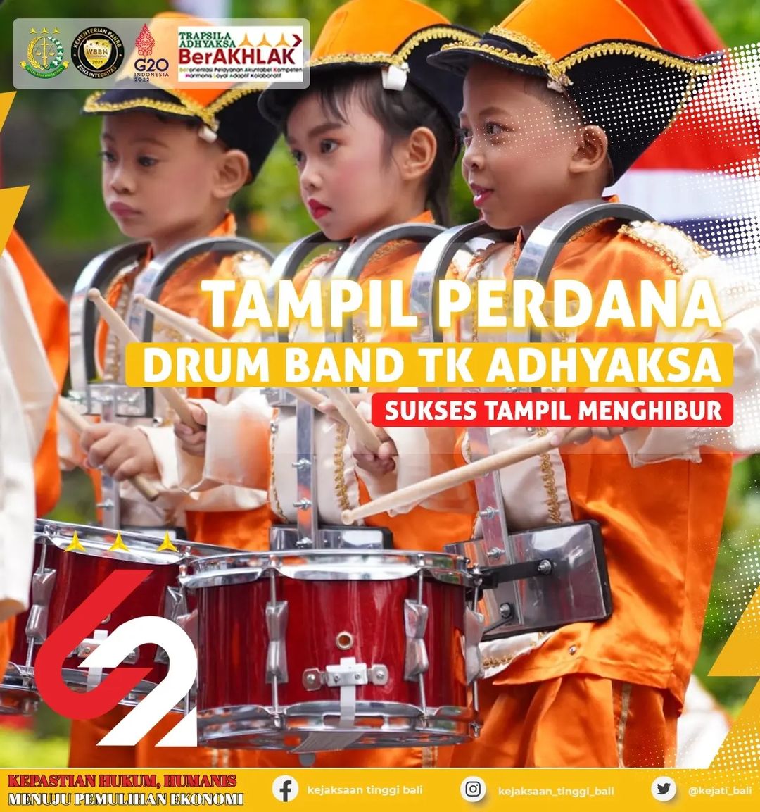 Kejutan dari TK Adhyaksa XXXIX Bali Pembukaan Pekan Olahraga Adhyaksa Kejati Bali dalam rangka memperingati Hari Bhakti Adhyaksa ke-62 dimeriahkan penampilan perdana Drum Band TK Adhyaksa. Dibawah