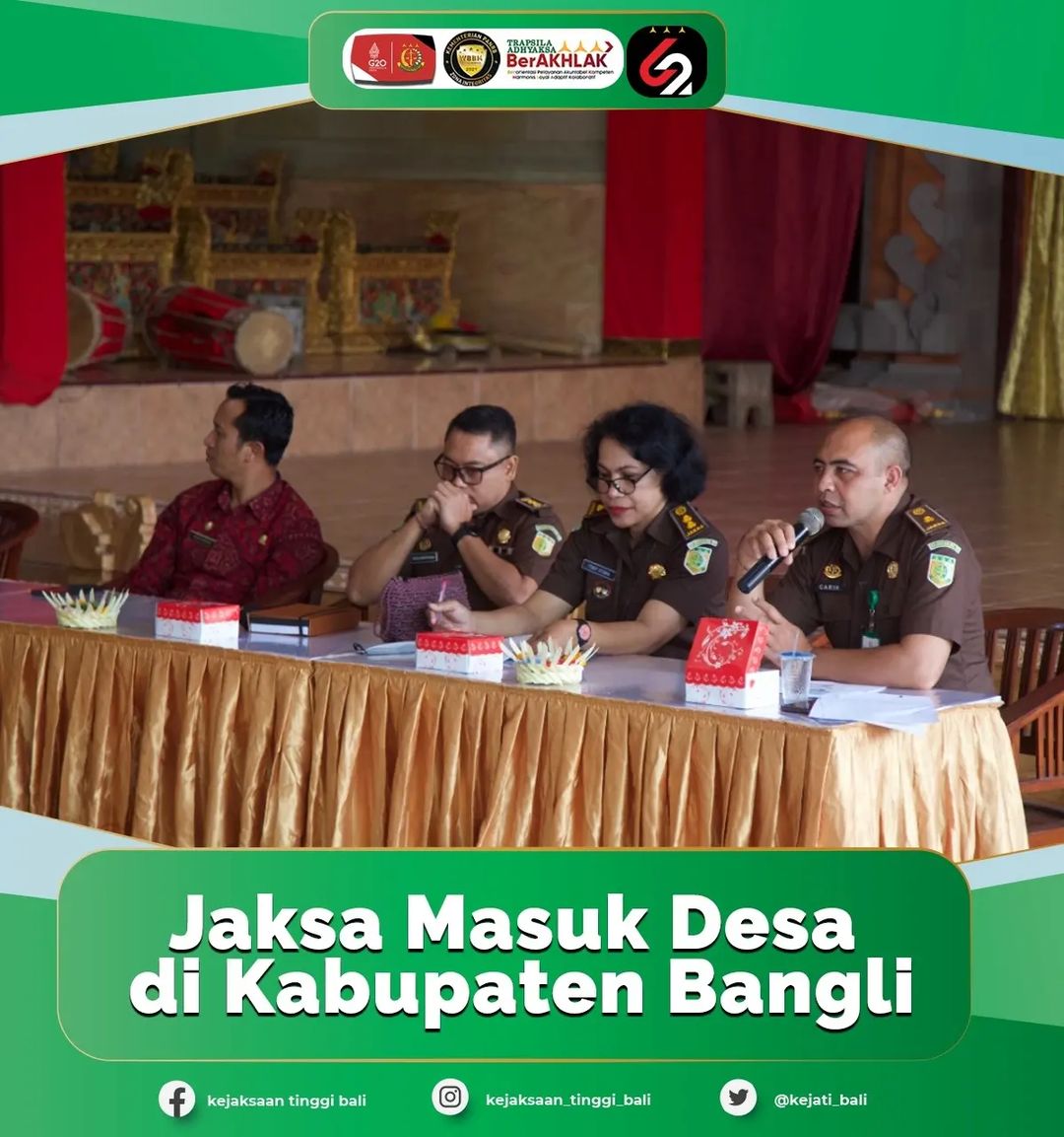 Setelah mensosialisasikan pentingnya pengelolaan keuangan desa di Kotamadya Denpasar, Kabupaten Gianyar, Badung dan Tabanan, Jaksa Masuk Desa Kejati Bali hadir di Kabupaten Bangli. Bertempat di Balai Banjar Pen