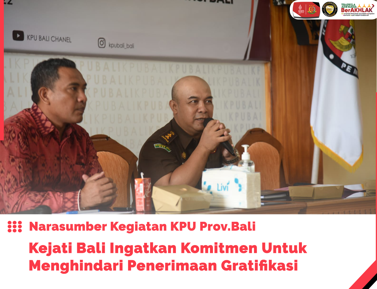 Menjelang pelaksanaan tahapan Pemilu 2024, jajaran KPU Provinsi Bali, Kabupaten / Kota di Bali, diingatkan untuk tidak menerima gratifikasi dalam setiap tahapan Pemilu 2024. Hal ini sebagaimana yang disampaikam