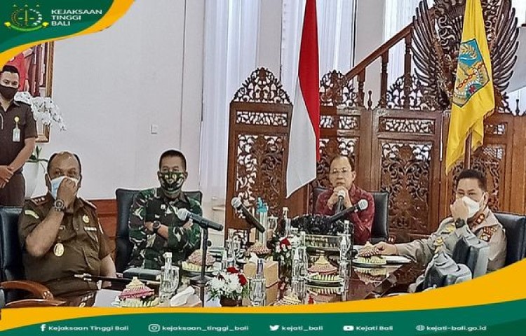 Kepala Kejaksaan Tinggi Bali, bersama Gubernur Bali, Kapolda Bali dan Panglima IX Udayana secara virtual mengikuti Rapat Koordinasi Penjelasan Pokok Pokok Subtansi dan Penyiapan Peraturan Pelaksanaan UU Cipta K
